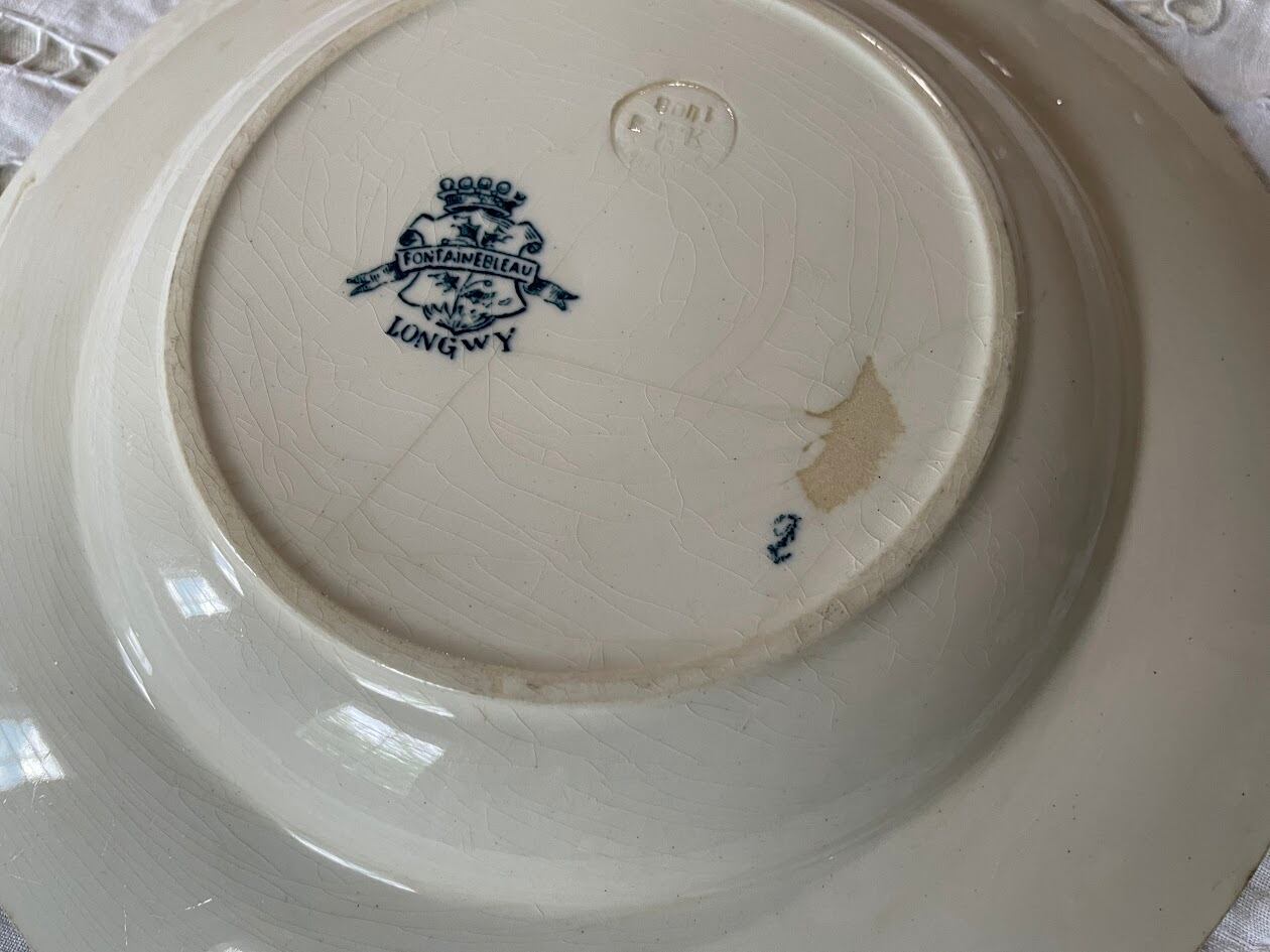 【V-260】鳥とリボン 深皿 Longwy 『Fontainebleau 』 ロンウィ スーププレート アンティーク フランス