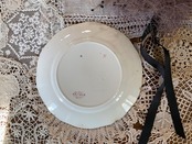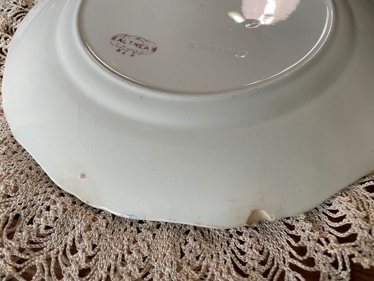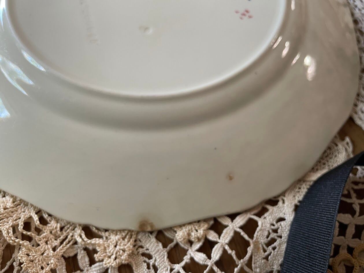 ※縁裏に古い欠けが2か所、縁表に古く目立ちにくい薄い欠けが2か所、欠け部分に色付きあり。その他は貫入がありますが、年代から見てもきれいな方だと思います。