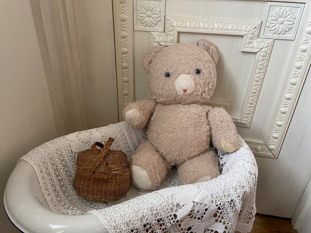 フランスの蚤の市からやってきました。丸いフォルムとおとぼけな表情が可愛いベア。
