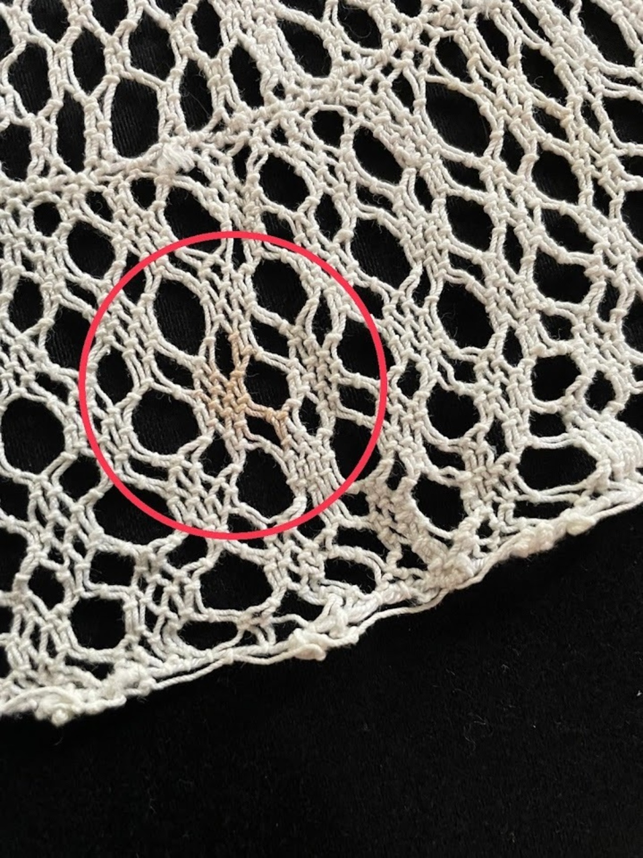 *縁にほつれがいくつかみられます。端の方に1か所シミがあります。