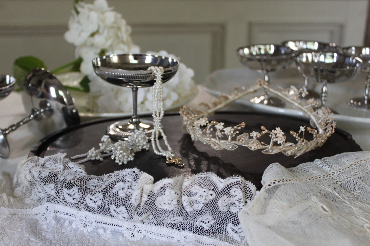 フランス アンティークレースパーツ チュールレース 【D-335B】