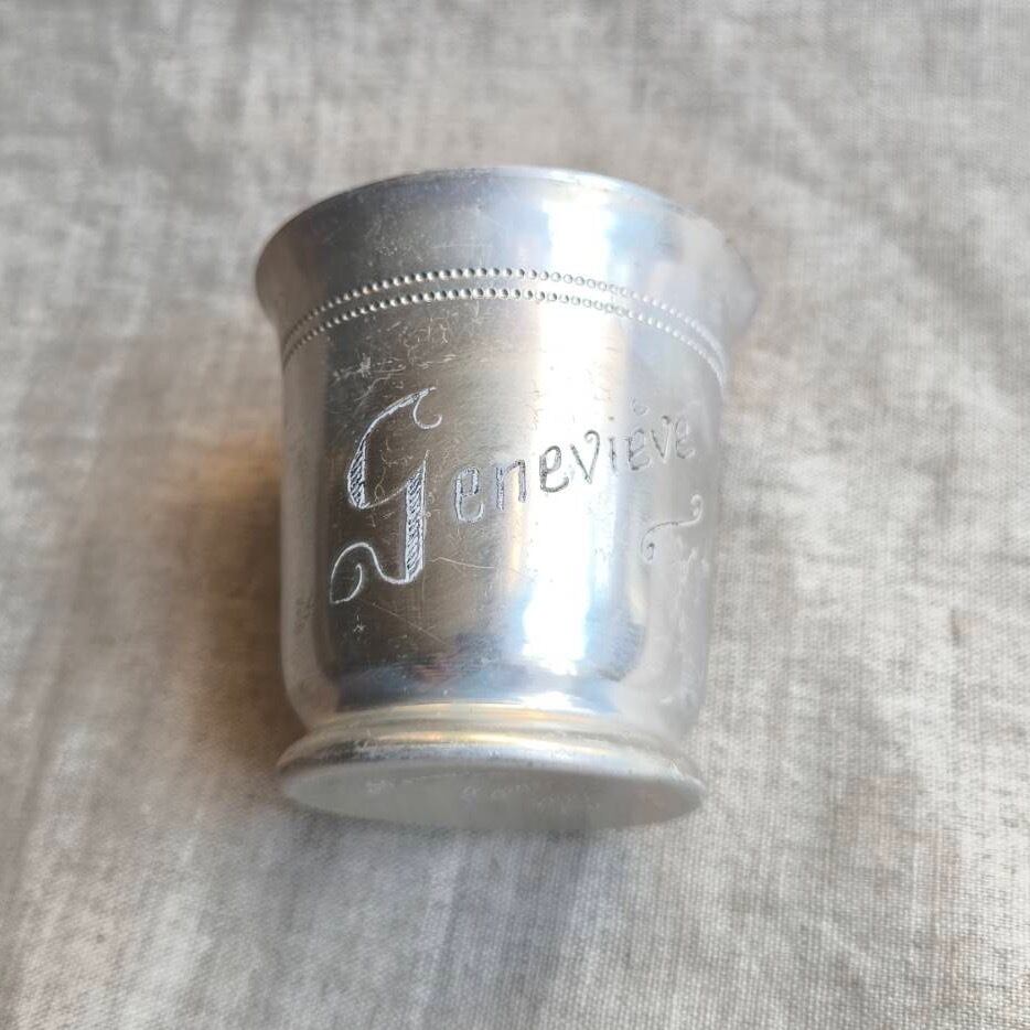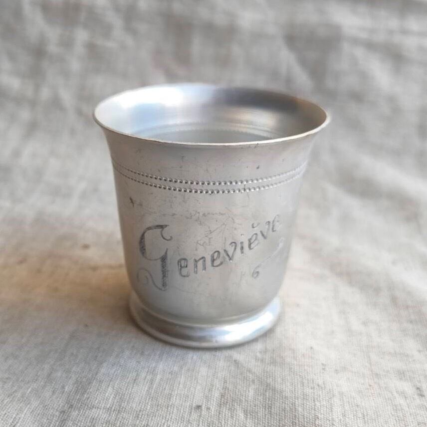 〖フランスアンティーク ルルドカップ アルミ ベルナデッタ 祈り シャビー ビンテージ〗