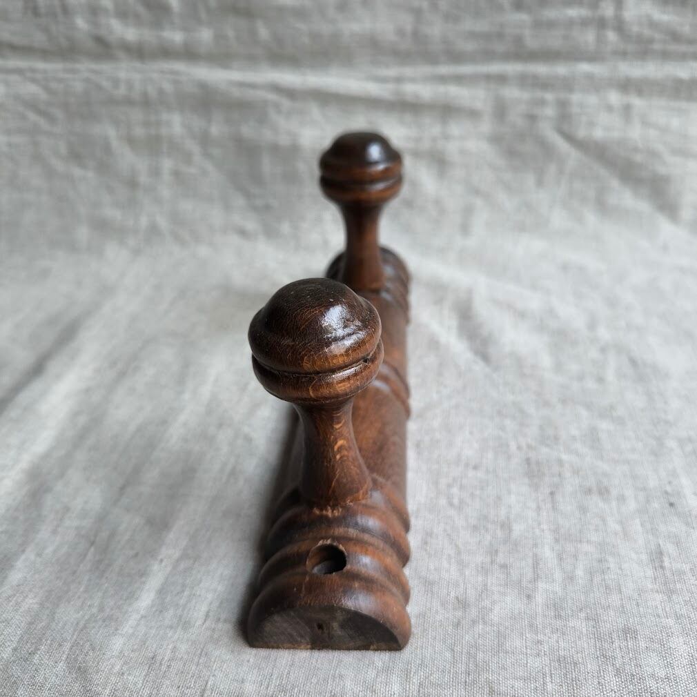 〖フランスアンティーク ウォールハンガー 2フック 壁掛け 焦茶色 ビンテージ〗