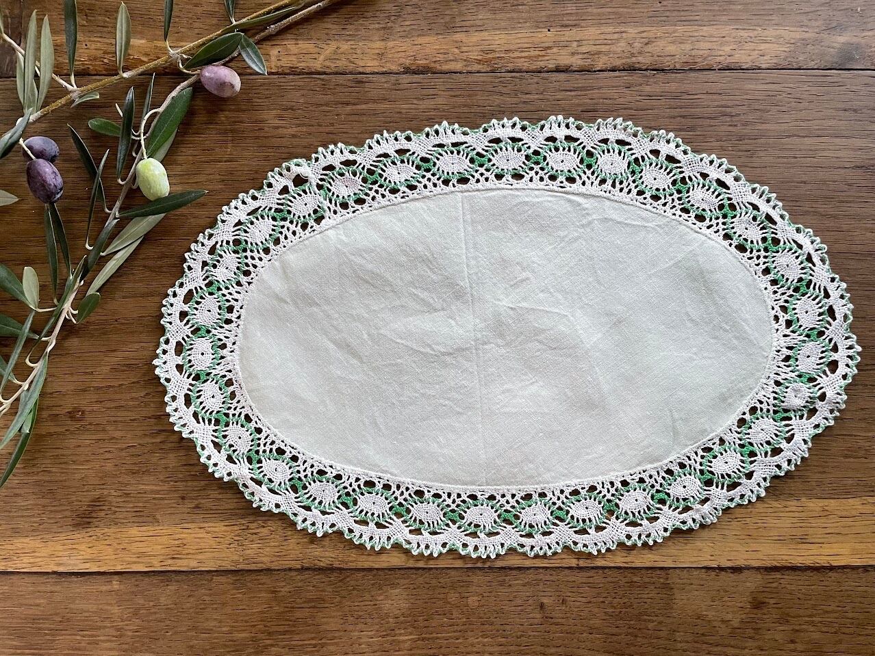 アンティーク オーバルドイリー グリーンのテーブルセンター ランチョンマット 【D-149】