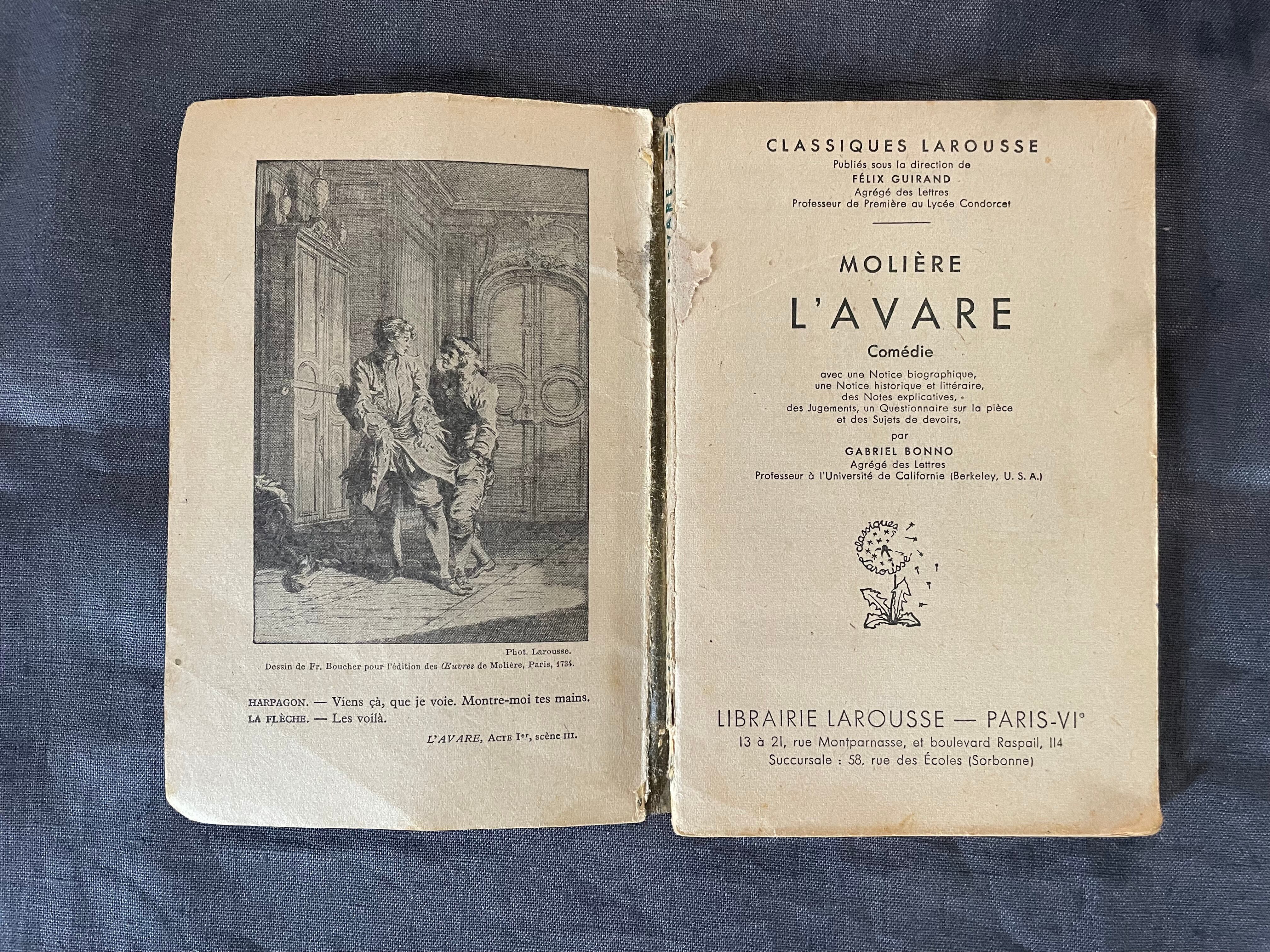 フランス 古典喜劇『L'AVARE/MOLIERE』 LAROUSSE刊 / 1933年 / ヴィンテージ本 / フランス語【P-32】